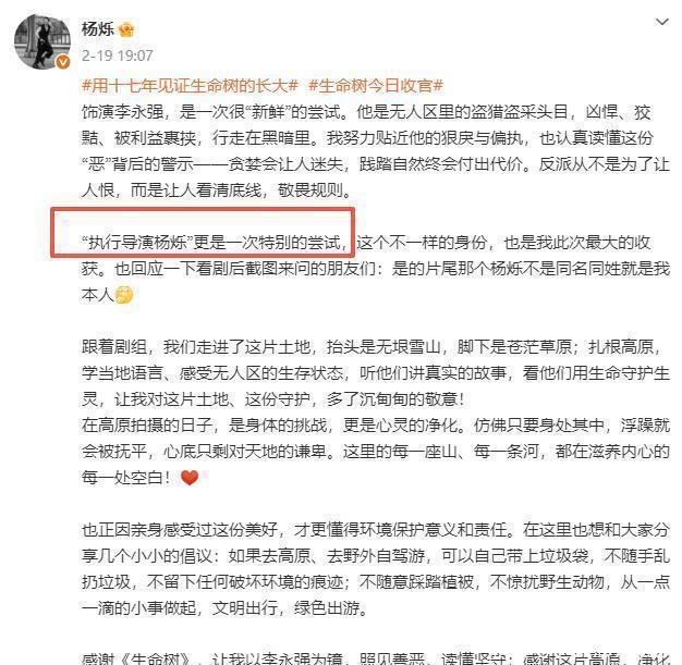 曾经他随便发个动态都能吸引几十万关注,现在的他似乎少了不少网友的评论,但他还是硬着头皮迈出了转型的第一步。终于走到这一步对不少电影圈的演员来说,长时间演戏确实能赢得观众的喜欢,但比起导演来,他们总觉得差点意思,毕竟导演赚得多不少。现在的杨烁在自己的社交媒体帐号上公开宣布,新作品《生命树》已经收官了。在这个剧里,他不仅担任演员,还担当了执行导演的角色。